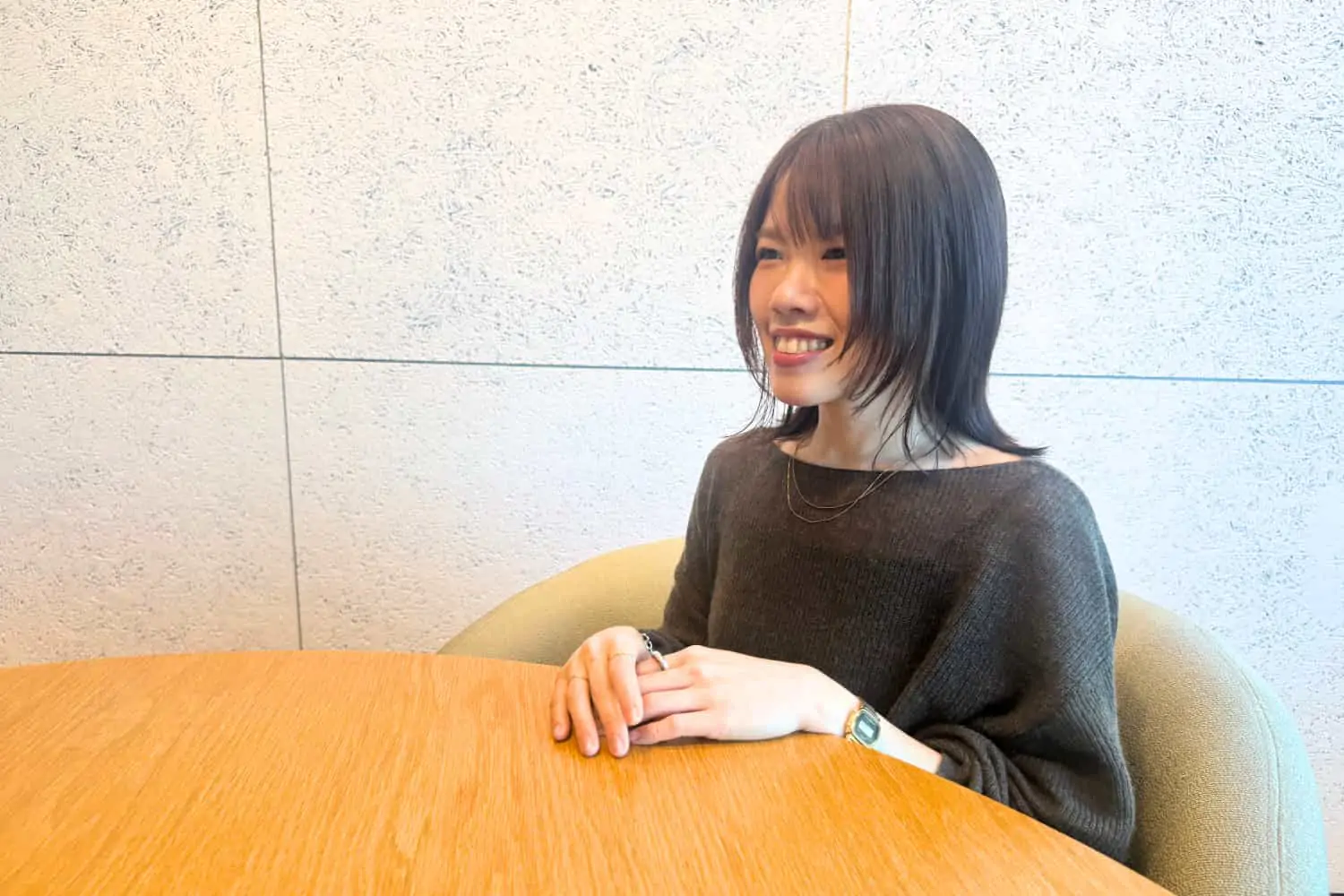 - MESHWELLを知ったきっかけは、Instagramのストーリーズに表示された広告でした。ちょうど転職について調べていた時期であり、自分に向けて届けられたように感じたことを覚えています。一度接客業を離れて、駅ビル運営に関わる仕事などを経験していました。直接的な販売からは離れていましたが、常に接客や現場と接点のある環境に身を置いていたため、心のどこかでは「やはり接客は良い仕事だな」という思いを持ち続けていました。現場で生き生きと働く販売スタッフの姿を見て、その気持ちはより強くなっていったように思います。